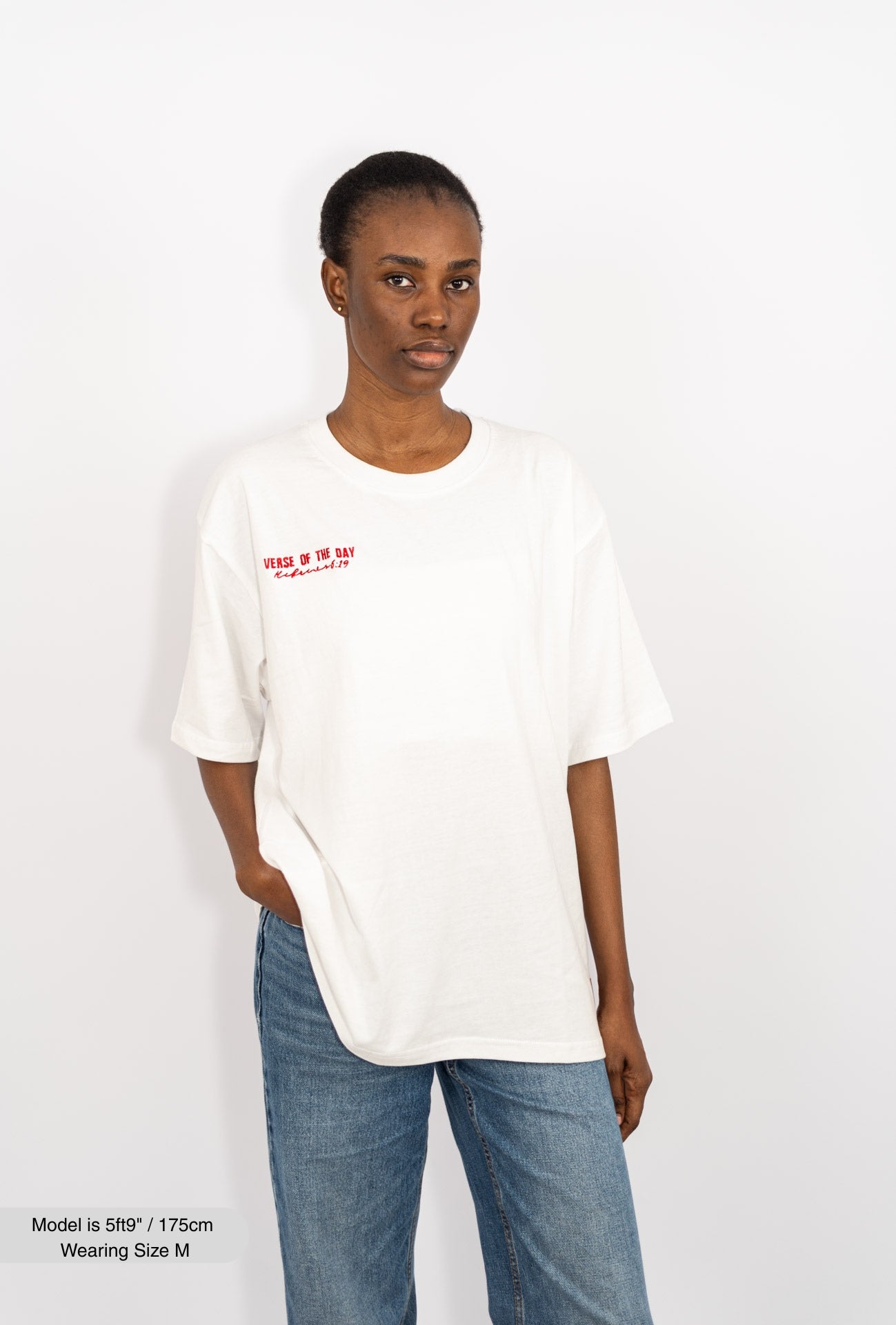 Oversized, crew neck, short sleeves with embroidery. Designed with a true-to-size fit, it offers both comfort and timeless style.